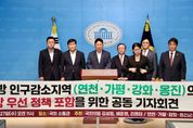 미디어라이프 중부신문 이종인 기자 | 수도권에 속하지만 인구감소지역으로 지정된 가평군, 연천군, 강화군, 옹진군이 정부의 지방 우선 정책에서 소외되고 있다며 개선을 강력히 요구했다. 이들 4개 지역 군수들은 27일 국회 소통관에서 공동 기자회견을 열고 “경인지방 인구감소지역을 지방 우선 정책에 반드시 포함시켜 달라”고 촉구했다. 정부는 민생회복지원금, 지역사랑상품권 등 일부 정책에서는 인구감소지역을 배려했으나, 최근 경제관계부처가 내놓은 ‘지방살리기 상생소비활성화 방안’ 등 주요 대책은 비수도권만을 대상으로 하고 있다. 이 때문에 수도권 안의 4개 인구감소지역은 제도적 사각지대에 놓여 있다는 것이 이들 지자체의 주장이다. 가평군과 연천군, 강화군, 옹진군은 모두 접경지역으로서 그동안 안보와 환경 등 각종 규제를 감내해 왔다. 그러나 '수도권정비계획법'에 따른 수도권 구분 탓에 정부 지원 대상에서 제외돼 왔다. 이들은 자신들을 “수도권에 가려진 보이지 않는 지역이 아니라 국가 균형발전의 최전선에서 고통받는 곳”이라고 규정하며 지원 필요성을 호소했다. 서태원 가평군수는 “가평군은 자연보전권역, 팔당 상수원 특별