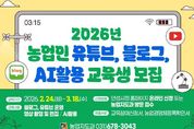 미디어라이프 중부신문 이종인 기자 | 안성시농업기술센터는 지역 농업인의 디지털 매체 활용 능력을 높이고 농산물 홍보 역량을 강화하기 위해 ‘2026년 농업인 유튜브·블로그·AI 활용 교육’ 교육생을 모집한다. 이번 교육은 블로그 운영뿐만 아니라 인공지능(AI)과 유튜브 동영상을 접목한 실전형 교육 과정으로 구성됐다. 안성시농업기술센터는 오는 2월 24일부터 3월 18일까지 매주 화·수·목요일 총 11회에 걸쳐 정보화교육장에서 전문 교육을 실시한다. 교육 내용은 블로그 만들기 및 AI를 활용한 게시물 작성 방법, 유튜브 채널 개설과 프로필 작성, 스마트폰을 활용한 동영상 촬영 및 편집 기술 등 실무 위주로 편성됐다. 교육 신청은 2월 2일부터 2월 20일까지 안성시청 홈페이지를 통한 온라인 접수 또는 농업지도과 방문 접수로 가능하다. 모집 인원은 10명 내외이며, 신청 시 교육참여신청서와 농업경영체등록확인서를 제출해야 한다. 합격자는 선정 후 문자로 개별 통보되며, 수료를 위해서는 전체 과정의 80% 이상 출석이 필요하다. 안성시농업기술센터 관계자는 “농업인이 직접 AI와 유튜브를 활용하여 고품질의 홍보 콘텐