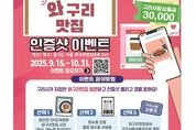 미디어라이프 중부신문 김민정 기자 | 구리시는 9월 15일부터 10월 31일까지 지역 대표 브랜드인 ‘와구리 맛집’으로 지정된 55개 업소를 대상으로 시민 인증 사진 이벤트를 진행한다고 밝혔다. 이번 이벤트는 구리시 대표 맛집을 시민이 직접 즐기고 홍보할 수 있도록 기획된 것으로, 소상공인 매출 증대와 지역경제 활성화를 도모하기 위해 마련됐다. 참여 방법은 누구나 쉽게 참여할 수 있도록 세 가지 인증 방식으로 운영한다. ▲첫째, 사회관계망서비스(SNS) 인증은 와구리 맛집에서 촬영한 인증 사진을 개인 사회관계망서비스(SNS)에 게시한 뒤 네이버 온라인 신청서(네이버 폼) 를 통해 응모하는 방식이다. ▲둘째, 영수증 인증은 사회관계망서비스(SNS) 사용이 익숙하지 않은 시민들을 위한 방법으로, 업소에서 결제한 영수증을 촬영해 업소명과 만족도를 함께 입력해 네이버 온라인 신청서(네이버 폼) 에 제출하면 된다. ▲셋째, 구리사랑상품권 자동 응모는 별도의 신청 절차 없이 이벤트 기간 중 와구리 맛집 업소에서 구리사랑상품권으로 결제 시 시스템을 통해 자동 응모된다. 응모자는 추첨을 통해 경품