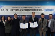 미디어라이프 중부신문 이종인 기자 | 수원시청소년청년재단은 11일 성균관대학교 자연과학캠퍼스와 청소년ㆍ청년의 취‧창업 지원과 전인적 성장을 위한 업무협약(MOU)을 체결했다고 밝혔다. 이번 협약을 통해 양 기관은 △대학생 연계사업 활성화를 위한 지속적인 교류활동 추진 및 내실화 △청소년의 진로 탐색을 위한 멘토링 및 학과 탐방 기회 제공 △기타 상호 협력이 필요하다고 인정되는 분야에서의 협조 체계를 구축할 예정이다. 재단 관계자는 "이번 협약이 단순한 형식적 절차에 머무르지 않고 우리 청소년‧청년들에게 새로운 경험과 지속적인 성장의 기회를 제공하는 중요한 출발점이 되기를 희망한다"며, "협약의 성공적인 이행을 위해 상호 긴밀하게 협력해 나갈 것"이라고 밝혔다.
