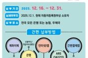 미디어라이프 중부신문 이종인 기자 | 수원시 영통구는 2025년 12월 정기분(2기분) 자동차세 77,391건, 130억9천1백만원을 부과·고지했다. 자동차세 정기분은 매년 6월과 12월 두 차례 정기적으로 부과되며, 이번 12월 정기분 자동차세 부과 대상은 2025년 12월 1일 현재 영통구에 등록·신고되어 있는 자동차, 건설기계(덤프, 레미콘차량) 및 이륜자동차(125cc 초과)로, 납부 기간은 오는 12월 16일부터 12월 31일까지이다. 고지서는 일반적으로 등기 또는 일반우편으로 발송되나, 납세자 본인이 고지서 전자 송달을 신청했다면, e-메일 또는 스마트 고지서 등 다양한 방법으로 전자 고지서를 받을 수 있다. 전자송달는 인터넷 위택스 또는 스마트 위택스 앱에서 쉽고 빠르게 신청할 수 있다. 특히, 올해부터는 별도 신청 없이 카카오톡 모바일 전자고지 시스템을 통해 자동차세 납부 안내를 받을 수 있어 납세 편의성이 한층 높아졌다. 납부는 고지서 지참 시 전국 모든 은행에서 방문 납부가 가능하며, 고지서가 없더라도 금융 기관의 CD/ATM기를 이용해 통장·현금카드·신용카드로 조회 및 납부할