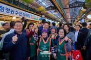 미디어라이프 중부신문 이종인 기자 | 이재명 대통령은 30일 오후 제주 타운홀미팅 '제주의 마음을 듣다' 종료 후, 김혜경 여사와 함께 1박 2일 제주 일정의 마지막 일정으로 동문시장을 방문했다. 동문시장은 제주시 도심에 위치한 대표적인 전통시장으로, 대통령 부부의 방문 소식에 상인들과 방문객들은 놀라움 속에 환호와 박수로 이들을 맞이했다. 입구에 서 있던 한 외국인 관광객은 어디서 왔냐는 이 대통령의 질문에 “오스트레일리아”고 답하기도 했다. 이 대통령 부부는 셀카촬영과 악수를 이어가며 과일모찌 가게에 들러 온누리상품권으로 한라봉모찌와 딸기모찌를 구입해 즉석에서 강유정 대변인, 하정우 수석 등과 함께 시식했다. 이동 내내 이어지는 셀카요청에도 이 대통령 부부는 반갑게 응했다. 그러자 시장을 찾은 많은 도민들은 이동 중인 이 대통령 부부를 향해 "사랑해요", "와 대박", "화이팅"을 외치는 소리로 화답했다. 이 대통령은 특히 어린이들의 사진 요청에 적극적으로 답했다. "애기 있어요"라는 소리가 들리면 발걸음을 멈추고 아이들과 하이파이브를 하거나 반갑게 셀카를 찍었다.
