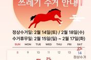 미디어라이프 중부신문 이종인 기자 | 고양특례시 일산서구는 설 연휴 기간 주민 불편을 최소화하고 쾌적한 도시환경을 유지하기 위해 오는 14일부터 18일까지 5일간 생활폐기물 관리대책을 추진한다. 구는 ▲비상근무체계를 통한 신속한 청소행정 서비스 제공 ▲재활용품 분리배출·생활폐기물 감량 홍보 ▲연휴 기간 수거일 사전 안내 등을 실시해 올바른 쓰레기 배출을 유도할 방침이다. 이달 14일과 18일을 집중 수거일로 지정해 생활폐기물과 음식물 관련 폐기물을 정상 수거하고, 설 연휴 기간인 2월 15일부터 17일까지는 수거를 중단한다. 이에 따라 연휴 기간 중 생활쓰레기 배출 자제와 수거 일정 조정사항을 사전 홍보할 계획이다. 또한 연휴 기간, 총 17명 규모의 청소대책 상황반과 대응반을 편성·운영해 생활쓰레기 관련 민원과 무단투기 신고에 신속히 대응하고 쓰레기 투기 상습지역을 중심으로 순찰과 집중 수거를 병행한다. 구 관계자는 “설 연휴에도 주민들이 불편 없이 쾌적한 환경에서 명절을 보낼 수 있도록 청소행정 운영에 최선을 다하겠다”며 “주민들께서도 수거일을 준수하고 올바른 분리배출과 쓰레기 감량에 적극