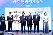 미디어라이프 중부신문 이종인 기자 | 파주시가 평화경제특구 유치를 향한 염원과 의지를 대내외에 알리는 '평화경제특구 비전 선포식'을 지난 7일 개최했다. 파주시민회관 대공연장에서 개최된 이번 행사는 김경일 파주시장을 비롯해 주요 내빈과 평화경제특구 유치 시민추진단, 시민 등 200여 명이 참석한 가운데 진행됐다. 행사는 파주시립예술단의 식전 공연을 시작으로, 개회식, 평화경제특구 비전 발표, 시민추진단 2기 위촉식 순으로 이어졌다. 김경일 파주시장은 비전 발표를 통해 평화를 기반으로 한 경제 성장과 신산업 생태계 구축을 목표로 하는 파주 평화경제특구의 추진 방향을 제시했다. 특히 이날 행사에서는 지난해 12월 구성된 ‘평화경제특구 유치 시민추진단 2기’위촉식이 함께 열려, 민관이 함께하는 평화경제특구 파주 유치 추진 체계의 본격 가동을 알렸다. 행사의 대미로는 멋글씨 예술가(캘리그라퍼) 이화선 작가가 참여한 붓글씨 시연이 진행됐으며, 김경일 파주시장과 내빈, 시민추진단 대표가 함께한 장붓 시연을 통해 ‘평화경제특구 파주’유치에 대한 강한 의지를 상징적으로 표현하며 현장의 열기를 더했다. &nbs