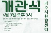 미디어라이프 중부신문 이종인 기자 | 파주시는 오는 4월 3일 운정호수공원 내 에코토리움에서 '파주시환경센터 에코온' 개관식을 열 예정이다. 이번 개관식은 김경일 파주시장, 시의회 의원들과, 유관기관 및 시민 대표 등 약 100여 명과 함께 에코온의 출범을 대내외에 알리는 공식 행사로 기획됐다. 파주시환경센터 에코온은 환경교육과 탄소중립 정책 지원 기능을 통합한 시설로 기후위기 대응과 지속가능한 지역사회 실현을 위한 시민 실천의 거점으로 조성됐다. 이날 개관식 1부에서는 개식 선언과 내빈 소개, 경과보고, 기념사 및 축사, 현판 제막식이 진행되며, 이후 주요 내빈을 대상으로 시설 견학이 이어질 예정이다. 이어 2부에서는 시민 참여형 프로그램이 운영된다. 카혼팀의 환경 문화 공연을 시작으로, 시민과 내빈이 함께 참여하는 ‘금줄 꾸미기’프로그램이 진행된다. 에코온이 지향하는 가치와 약속을 시민과 함께 만들어간다는 의미를 담아낸 상징적 프로그램이다. 또한 파주 시민을 상징하는 참여자들이 꽃잔디를 식재하는 퍼포먼스를 통해 에코온의 출발을 시민의 참여와 책임으로 함께 만들어 간다는 의미를 더할 계획이다.