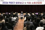 미디어라이프 중부신문 이종인 기자 | 고양특례시는 지난 26일 덕양구청 대회의실에서 ‘2026년 덕양구 업무보고 및 직원 소통간담회’를 개최했다. 업무보고에는 이동환 고양시장과 주시운 덕양구청장을 비롯해 구청 13개 과·21개 동행정복지센터의 부서장, 8·9급 저연차 공무원 등 100여 명의 직원이 참석했다. 2026년 업무보고는 주시운 덕양구청장과 부서장의 보고를 통해 민선8기 덕양구 핵심 성과와 2026년 업무 추진 방향을 간략히 공유하고, 직원들과의 자유로운 토론 시간을 확대해 현장의 목소리를 청취하는 데 중점을 뒀다. 이날 부서별 업무보고와 관련해 이동환 시장은 ▲덕양구를 대표하는 창릉천 유채꽃·코스모스 축제의 성공적 개최를 위한 주관 부서와 행신2동 행정복지센터의 적극적인 협조 ▲지적재조사 사업 등 시민 불편 해소를 위한 주요 사업의 속도감 있는 추진을 당부했다. 특히 20~30대 직원들과 격의 없이 소통하는 자유토론 시간이 눈길을 끌었다. CES 2026에서 고양시에 도입하고 싶다고 생각한 기술 분야, 전 세계적인 주목을 받은 ‘고양콘’에 대한 궁금증 등 다양한 주제로 활발한 의견 교