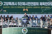 미디어라이프 중부신문 이종인 기자 | 이동환 고양특례시장이 1일 고양종합운동장에서 열린 ‘고양특례시 5단체시민연합회 체육한마당’ 개회식에 참석해 축사했다. 이동환 시장은 "이번 대회가 시민 모두가 함께 땀 흘리고 응원하며 서로를 이해하는 진정한 화합의 장이 되길 바란다"라고 전했다. 이날 행사에서 참가자들은 족구, 줄다리기, 낙하산 릴레이 등의 경기를 치르며 선의의 경쟁을 펼쳤다.