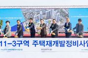 미디어라이프 중부신문 이종인 기자 | 수원 영화동 111-3구역이 정비구역으로 지정된 지 16년 만에 첫 삽을 떴다. 수원시는 10월 31일 장안구 경수대로 815-2 현지에서 111-3구역 주택재개발정비사업 착공식을 개최했다. 착공식에는 이재준 수원시장, 김승원(수원시갑) 의원, 수원시의회 강영우 의원, 111-3구역 주택재개발정비사업 이지수 조합장과 조합원, 시공사(두산건설) 관계자 등이 참석했다. 111-3구역은 2009년 재개발 정비구역으로 지정됐지만 정비구역이 해제되고, 다시 해제가 취소되는 등 사업 추진에 난항을 겪었다. 마침내 2023년 5월 관리처분인가를 받았다. 111-3구역에는 지하 2층·지상 29층 공동주택 6개 동(556세대)이 건립된다. 2028년 8월 준공 예정이다. 이재준 시장은 “재개발 사업 추진 과정에서 많은 우여곡절이 있었는데, 똘똘 뭉쳐서 착공을 이뤄낸 조합원들에게 축하를 전한다”며 “안전하게, 멋진 공동주택단지를 건설할 수 있도록 다들 도와주시길 바란다”고 말했다. 이어 “수원시는 기존에 5~10년 걸리던 신규 정비구역 지정 기간을 2년으로 단축해