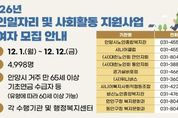미디어라이프 중부신문 이종인 기자 | 안양시가 1일부터 12일까지 건강하고 활기찬 노후를 위한 ‘2026년 노인일자리 및 사회활동 지원사업’의 참여자 4,998명을 모집한다. 참여자 규모는 유형별로 ▲노인공익활동 3,155명 ▲노인역량활용 1,106명 ▲공동체사업단 574명 ▲취업지원 163명 등이다. 노인일자리사업의 수행기관은 ▲안양시노인종합복지관 ▲비산노인종합복지관 ▲안양시니어클럽 ▲만안·동안노인지회 ▲경기실버포럼 ▲(사)위니버스 ▲시니어복지사회적협동조합 ▲만안구청 ▲동안구청 등 10곳이며, 참여자는 수행기관에서 추진하는 다양한 일자리·사회활동에 참여하게 된다. 신청 자격은 공고일(11월 27일) 기준 안양시에 주민등록이 되어 있는 어르신이다. 세부 기준은 ▲노인공익활동은 65세 이상 기초연금·직역연금 수급자(배우자 포함) ▲노인역량활용은 65세 이상(일부 유형은 60세 이상) ▲공동체사업·취업지원은 60세 이상이다. 다만, 생계급여 수급자(취업지원 제외), 건강보험 직장가입자, 장기요양등급자 등 일부 대상자는 신청이 제한된다. 희망자는 신분증과 주민등록등본 등을 지참하고 해당
