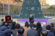 미디어라이프 중부신문 이종인 기자 | 용인특례시는 22일 오후 기흥구 영덕동 산 1-1번지에서 ‘크리스마스트리 점등식’ 행사가 열렸다고 23일 밝혔다. 기흥구기독교연합회가 주관한 이 행사에는 이상일 시장을 비롯해 용인지역 교회 관계자 약 40여명이 참석했다. 이날 점등한 크리스마스트리는 내년 1월까지 희망과 사랑의 빛을 밝혀준다. 이 행사에서 기흥구기독교연합회는 어려운 이웃을 위해 사용해달라며 기흥구에 라면 200박스를 기탁했다. 이상일 시장은 축사를 통해 “오늘 우리가 밝히는 성탄트리가 이곳을 지나는 분들에게 세상의 빛으로 오신 아기 예수님 탄생의 의미를 잘 전달하기를 소망한다”며 “시민들이 성탄절을 맞아 좀 더 넉넉한 마음으로 서로를 더 많이 배려하고 어두운 곳에 사랑을 많이 전달하면 좋겠다”고 말했다.