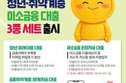 미디어라이프 중부신문 이도경 기자 | 제도권 금융 이용에 어려움을 겪는 청년·취약계층 미소금융 대출 3종 세트 출시 ■ 청년 미래이음 대출 금융이력이 부족한 미취업·취업초기 청년 - (대출한도) 최대 500만 원 - (대출기간) 최대 11년(거치 6년, 상환 5년) - (대출금리) 연 4.5% 이내 ■ 금융취약계층 생계자금 대출 정책서민금융을 성실히 상환하였음에도 제도권 금융이 불가한 취약계층 - (대출한도) 최대 500만 원 - (대출기간) 최대 6년(거치 1년, 상환 5년) - (대출금리) 연 4.5% 이내 ■ 미소금융 운영자금 대출 미소금융 이용대상자 중 저소득·저신용 영세 자영업자 - (대출한도) 최대 2000만 원 - (대출기간) 최대 5.5년(거치 6개월, 상환 5년) - (대출금리) 연 4.5% 이내 ※ 청년은 대출한도 3000만 원, 거치기간 2년 가능! ☞ 상담 예약 안내 서민금융진흥원 '잇다' 어플 또는 서민금융콜센터 국번없이 ☎1397