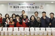 미디어라이프 중부신문 이종인 기자 | 수원시 팔달구 매교동 새마을부녀회는 지난 16일 연말을 맞아 매교동 행정복지센터 대회의실에서 관내 홀몸어르신 및 저소득층을 위한 ‘사랑의 떡국 나눔 행사’를 진행했다. 이날 새마을부녀회 회원들은 새해를 앞두고 따뜻한 마음을 담아 떡국 밀키트 등 음식을 정성껏 준비해 관내 홀몸어르신과 저소득층 50가구에 직접 전달하며 이웃사랑을 실천했다. 이미정 매교동 새마을부녀회장은 “정성껏 준비한 떡국이 추운 겨울을 보내는 이웃들에게 힘이 되길 바란다”며 “앞으로도 지역의 어려운 이웃들을 위한 나눔 활동을 꾸준히 이어가겠다”고 말했다. 이지효 매교동장은 “항상 지역사회를 위해 애써주시는 새마을부녀회 회원들께 감사드린다”며 “이웃들에게 전달된 따뜻한 마음이 겨울을 보내는 데 도움이 되길 바란다”고 전했다.