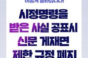미디어라이프 중부신문 이도경 기자 | ■ 시정명령을 받은 사실 공표시 신문 게재면 제한 규정 폐지 - 시행일: 2026년 상반기 · 주요내용 방미통위로부터 시정명령을 받은 사실을 신문에 공표할 때 게재면을 제한하던 규정을 폐지 * 국민의 주된 뉴스 이용이 인터넷 중심으로 변화된 환경을 고려 사업자가 시정명령을 받은 사실을 종이신문에 공표하는 경우 일부 페이지에만 게재 (일반신문) 2면, 3면, 사회면, 경제면/ (스포츠신문) 2면, 3면, 사회면 사업자가 게재면을 자율적으로 선택 가능 (「시정명령을 받은 사실의 공표기준(고시)」 개정) - 개정 상황은 방미통위 홈페이지, 법령정보센터를 통해 확인 가능
