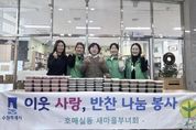미디어라이프 중부신문 이종인 기자 | 수원시 권선구 호매실동 새마을부녀회는 지난 26일, 관내 취약계층 가구를 대상으로 나눔의 손길을 전하고자 ‘사랑의 반찬 나눔’ 행사를 진행했다. 이날 행사는 호매실동 행정복지센터에서 진행됐으며 새마을부녀회원들이 직접 만든 △불고기 △무생채 △시래기된장국 등 반찬들을 포장하여 관내 취약계층 40가구에 직접 전달했다. 영양 가득 따뜻한 반찬을 전달받은 주민들은 부녀회 회원들에게 감사의 인사를 전했다. 조창순 새마을부녀회장은 “어느새 겨울이 성큼 다가온 쌀쌀한 날씨에도 불구하고 주위 이웃들에게 온정을 나눌 수 있는 뜻깊은 시간이었다”라며, “호매실동 모든 주민들이 올겨울 건강하게 지내시길 바란다”라고 말했다. 이정훈 동장은 “이른 아침부터 봉사한 새마을부녀회에 감사드린다”라며 “앞으로도 다양한 나눔 행사를 통해 온정 넘치는 호매실동이 될 수 있도록 노력하겠다”라고 전했다.