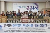 미디어라이프 중부신문 이종인 기자 | 수원시 권선구 금곡동 행정복지센터는 지난 29일, 추석 명절을 맞이하여 ‘추석 명절 이웃사랑 나눔 전달식’을 개최했다. 이번 전달식에는 △금곡동 주민자치회 △통장협의회 △지역사회보장협의체 △새마을문고 △방위협의회 △수원자율방범대 칠보지대 △무학사 △용화사 △서호새마을금고 △수원농협 금곡지점 △시립금곡동어린이집 △시립금호어린이집 △백양TNS 등 지역 내 다양한 단체 및 유관기관들이 참여해 따뜻한 명절 분위기를 조성했다. 참석자들은 △백미 △라면 △상품권 △선물세트 등 다채로운 명절 선물을 준비했으며, 이 물품들은 추후 취약계층 주민들에게 전달될 예정이다. 장성임 동장은 “어려운 시기에도 이웃사랑을 실천해 주신 모든 단체와 기관에 깊은 감사를 드리며 이웃과 함께 정과 사랑을 나누는 추석 명절이 되기를 바란다”라고 말했다.