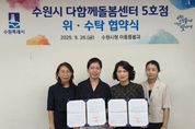 미디어라이프 중부신문 이종인 기자 | 수원특례시는 26일 시청 아동돌봄과 회의실에서 비영리민간단체 ‘꿈자람꿈드리’와 다함께돌봄센터 5호점 위·수탁 계약을 체결했다. 위탁 기간은 2025년 10월 1일부터 2030년 9월 30일까지 5년이다. 수원시 다함께돌봄센터 5호점은 영통구 중부대로448번길 28(원천레이크파크) 내 100㎡ 규모 시설로, 센터장 1명, 돌봄교사 1명, 시간제 돌봄교사 1명이 근무하며 아동들을 돌보고 있다. 수원시는 수탁자 선정 심의위원회를 열어 응모 기관의 운영 능력을 검토했고, 기존 운영법인인 꿈자람꿈드리를 위탁 기관으로 선정했다. 안정적인 운영과 서비스 연속성이 확보될 것으로 기대된다. 다함께돌봄센터는 방과 후 돌봄이 필요한 6세~12세 아동을 대상으로 ▲급·간식 제공 ▲놀이·학습 지도 ▲특별활동 프로그램 운영 등 맞춤형 돌봄서비스를 제공한다. 우선으로 맞벌이 가정 초등 저학년과 다자녀 가구 아동이 이용할 수 있다. 센터는 월~금요일 주 5일 운영하며, 학기 중에는 오전 11시부터 오후 8시까지, 방학 중에는 오전 9시부터 오후 8시까지 문을 연다. 수원시