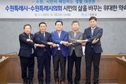 미디어라이프 중부신문 이종인 기자 | 수원시 여야가 “민생안정을 위한 시민체감 숙원사업을 추진하겠다”고 공동선언을 했다. 이재준 수원시장, 수원시의회 이재식 의장, 김정렬 부의장, 김동은 더불어민주당 교섭단체 대표, 박현수 국민의힘 교섭단체 대표는 10일 시청 상황실에서 여야 공동선언을 하고, 협력을 약속했다. 수원시 여야가 뜻을 모아 추진하는 시민체감 숙원사업은 ▲출산지원금 확대 ▲청소년 생리용품 지원 ▲무상교통 ▲대상포진 무료접종 등 시민들에게 실질적으로 도움이 되는 것들이다. 10월 조례안 의결, 예산 편성 후 내년 시행 예정 10월 임시회에서 조례안을 의결하고, 11월 정례회에서 예산을 편성한 후 내년에 시행할 계획이다. ‘무상교통’은 70세 이상 어르신 등이 무료로 대중교통을 이용할 수 있도록 교통비를 지원하는 사업이고, ‘청소년 생리용품 지원’은 11~18세 여성 청소년에게 생리용품을 지원하는 것이다. ‘출산지원금 확대’는 첫째 아이 출산지원금(50만 원)을 신설하고, 둘째 아이 출산지원금은 기존 50만 원에서 100만 원으로 상향하는 것이다. ‘대상포진 무료 예방접종’은