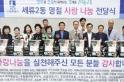 미디어라이프 중부신문 이종인 기자 | 수원시 권선구 세류2동 행정복지센터는 지난 25일, 추석 명절을 맞이하여 관내 취약 계층에게 나눔을 통한 사랑을 전하기 위해 “추석명절 이웃사랑 나눔” 전달식을 개최했다. 이번 전달식에는 △세류2동 주민자치회 △통장협의회 △새마을부녀회 △새마을문고회 △바르게살기위원회 △자유총연맹 △체육진흥회 △방위협의회 △지역사회보장협의체 △대일실업(주)가 참여했으며 지역 내 여러 기관과 개인들의 나눔도 더해졌다. 변영호 동장은 “어려운 시기에 이웃사랑에 참여해 주신 단체(기관)에 감사드리며, 앞으로도 유관기관과 적극 협력으로 행복과 웃음이 피어나는 정겨운 세류2동을 만들기 위해 최선을 다하겠다”라고 말했다.