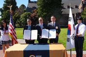 미디어라이프 중부신문 이종인 기자 | 평택시의회는 22일, 미국 애니 라이트 스쿨에서 열린 협약식에 참석해 양해각서(MOU)를 체결하며, 평택국제학교 설립을 공식화했다. 이날 협약식에는 강정구 평택시의회 의장, 정장선 평택시장, 애니 라이트 스쿨 데이비드 오버튼 이사장, 제이크 과드놀라 교장을 비롯한 학교 관계자, 학부모, 학생, 지역 인사들이 함께했다. 협약식에 이어 열린 리셉션에는 메를린 스트릭랜드 연방 하원의원, 데니 헥 워싱턴주 부주지사, 라이언 멜로 피어스 카운티 행정수반 등 지역 주요 인사들이 참석해 지역 협력을 논의했다. 강정구 의장은 “오늘 양해각서(MOU) 체결을 계기로 평택국제학교 설립에 필요한 실무적 협의를 완료하고 교육환경 선진사례를 직접 확인함으로써 평택시의 글로벌 교육환경이 조속히 조성되기를 바란다”라고 하며 “시민들에게 실질적인 혜택이 돌아가도록 꼼꼼히 점검하고 정책에 반영하겠다”고 밝혔다.
