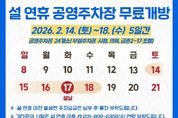미디어라이프 중부신문 이종인 기자 | 파주도시관광공사는 12일, 2026년 설 명절을 맞아 시민과 고향을 방문하는 귀성객의 교통편의를 위해 공영주차장 24곳(부설주차장 시청, 의회, 금촌2-17 포함)을 오는 14일(토)부터 18일(수)까지 5일간 무료로 개방한다고 밝혔다. 설 연휴기간 동안 시민들이 안전하고 쾌적하게 주차장을 이용할 수 있도록 사전점검을 마쳤고 효율적인 인력 배치와, 비상연락 체계 유지를 통해 이용 불편을 최소화할 계획이다. 공사 조동칠 사장은 “시민들과 방문객의 주차 불편을 최소화하고, 안전한 시설관리를 통해 편안한 명절 연휴가 될 수 있도록 최선의 노력을 다하겠다”라고 말했다.
