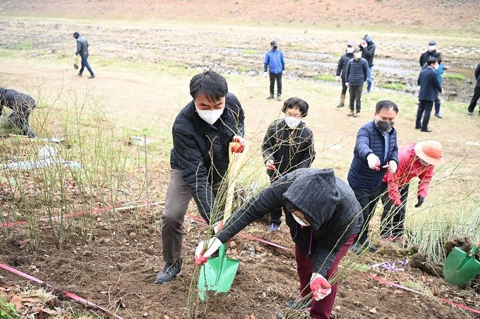 김상호 시장과 참여 시민들은 이날 산곡천 주변 꽃길 조성을 위해 황매화 2400여 그루를 식재했다. 이에 따라 산곡천은 개나리·벚꽃과 함께 황매화꽃까지 더해져 아름다운 꽃길로 이어질 전망이다.