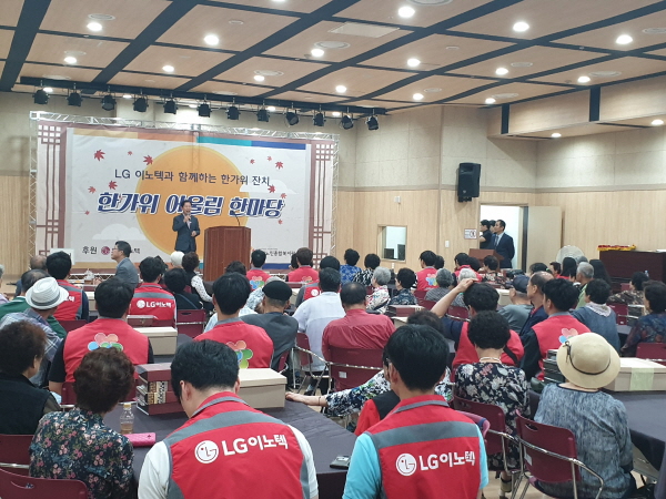이번 행사는 추석 명절을 맞이하여 지역사회에서 독거노인의 증가로 돌봄이 필요한 어르신, 사회적으로 단절되어 고립감과 소외감으로 있는 저소득 계층, 우울증 등 어려움을 겪고 있는 분들과 LG이노텍 직원들이 자원봉사자로 참여해 어르신들과 함께 바삭한 한과 만들기, 민요공연, 사물놀이, 공동체 프로그램 등 다양한 프로그램으로 이루어졌다. 특히, 추석맞이 모듬전, 잡채 등 한상차림 중식으로 모두 한자리에서 오순도순 같이 하는 풍성한 어울림 잔치가 됐다.