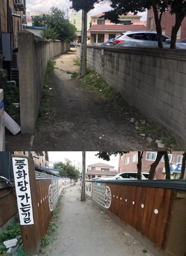 지역의 자긍심과 역사를 담은 풍화당을 알리고자 주민들은 뜨거운 한여름의 열기에도 아랑곳하지 않고 직접 진입로 청소부터 밑그림 작업, 칠 작업까지 총 7차례에 걸쳐 벽화를 완성했다.