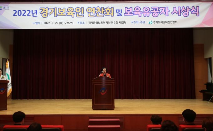미디어라이프 중부신문 엄병철 기자 | 경기도어린이집연합회 2022 연찬회 및 보육유공자 시상식이 9월 22일 경기종합노동복지회관 대강당에서 보육유공자, 축하객 및 경기도, 경기도의회 내빈 등 400여명이 참석하여 성황리에 개최됐다.