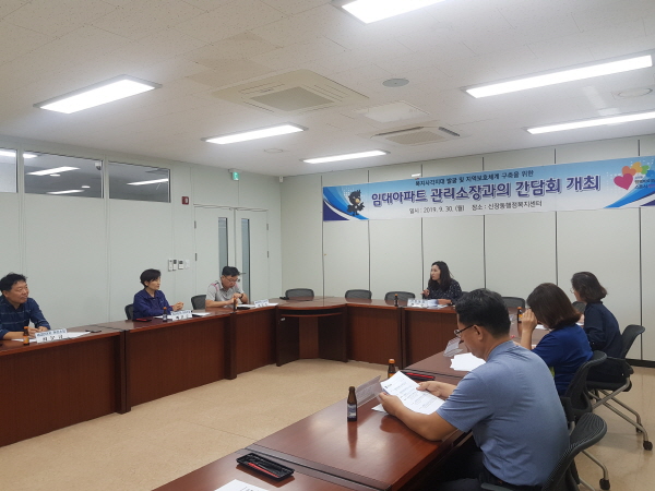 정길순 신장동행정복지센터동장은 “간담회를 통하여 임대아파트의 애로사항 등을 함께 공유할 수 있는 시간이었으며, 복지 사각지대 가구에는 공적급여 이외에도 민간자원 연계 등 다양한 방법으로 복지 사각지대 지원을 위한 방안들이 있으니 언제든지 행정복지센터로 문을 두드려주기 바란다.”고 밝혔다.