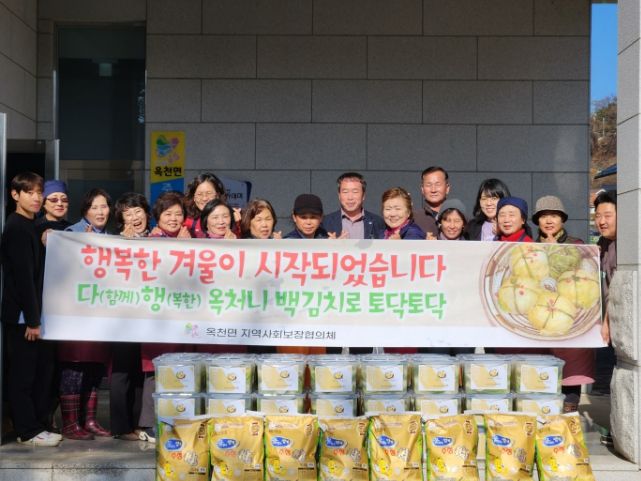 홍성복 옥천면장은 “추운 겨울 ‘백김치 토닥토닥’ 사업으로 옥천면은 행복한 겨울이 시작됐다.”며, “따뜻한 손길이 모여 정성으로 담근 백김치를 통해 훈훈한 온기가 모든 이웃들에게 전달되기를 바란다.”고 말했다.