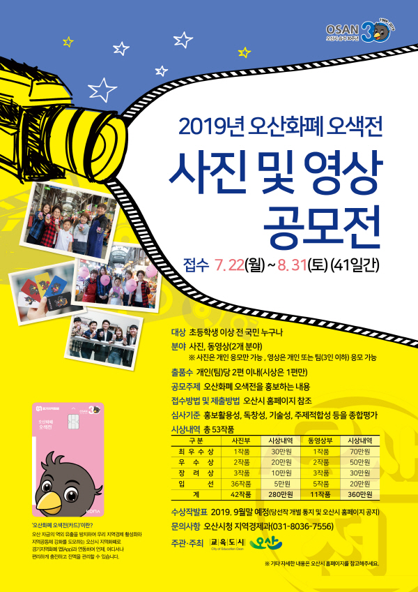 곽상욱 오산시장은 “오산화폐 오색전이 전국 명칭 공모를 통해 선정된 만큼 이번 오산화폐 오색전 사진 및 영상 공모전에도 많은 국민들의 참여를 기대한다.”고 말했다.