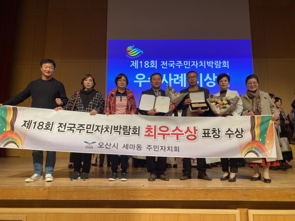 정찬성 주민자치회장은 “세마동 주민자치회 위원을 비롯해 세마동 각 단체 회원, 세마동 담당 공무원 등 많은 분들의 관심과 도움으로 좋은 성과를 낼 수 있었다. 앞으로도 주민자치 활성화와 따뜻한 공동체 회복을 위해 더욱 노력하겠다”고 수상 소감을 밝혔고, 최선호 세마동장은 “세마동이 오산시의 주민자치를 선도하는 지역으로 나아갈 수 있도록, 행정 역량을 최대한 발휘해 적극 지원하도록 하겠다”고 말했다.