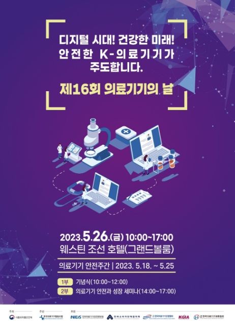 미디어라이프 중부신문 이도경 기자 | 식품의약품안전처는 ‘제16회 의료기기의 날’을 맞아 ‘디지털 시대! 건강한 미래! 안전한 K-의료기기가 주도합니다’를 주제로 기념식과 세미나를 5월 26일 웨스틴 조선(서울 중구 소재)에서 개최한다.