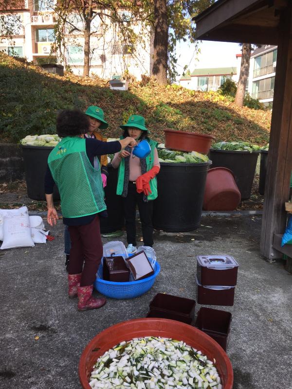 이날 행사에는 중국, 캄보디아 등 다문화가족 10명이 참석해 김장 배추를 절이고 동치미를 만들었다.