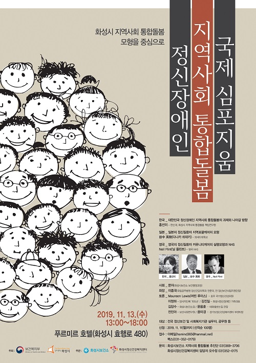 ‘화성시 지역사회 통합돌봄 모형을 중심으로’라는 주제 아래 열리는 이번 국제 심포지엄은 보건복지부와 화성시가 공동으로 주최하고 화성시 보건소, 화성시정신건강복지센터가 공동 주관한다.
