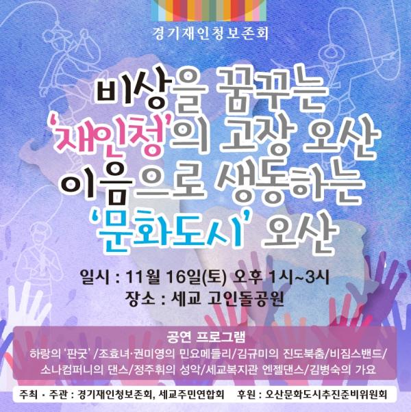 경기재인청보존회 관계자는 “과거 오산시 부산동에 있었던 경기재인청과 그 예술에 대해 시민에게 알리고 문화도시를 추진함에 있어 시민의 참여와 재인청 사업의 중요성을 강조하기 위해 본 공연을 기획하게 됐다”며 “돼지열병으로 독산성문화제가 취소되어 문화향유의 기회를 잃어 아쉬워했을 세교 주민들과 오산 내외의 분들이 함께 공연을 즐겼으면 좋겠다”고 밝혔다.