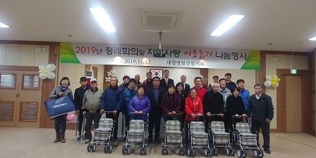 이번 행사는 지역의 거동이 불편한 어르신들을 위해 대월면발전협의회에서 지역 단체및 사업체 등의 회원들로부터 기부받은 500만원으로 실버카10 대와 효도지팡이 10 개를 기탁했고 또한 취약가구 자녀들에게 겨울패딩 13 벌을 전달했다.