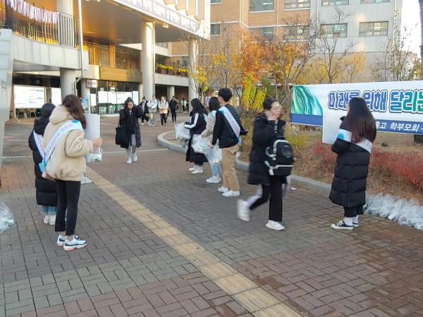 이날 영하권에 이르는 추운 날씨에도 불구하고 수능 선배들을 응원하는 모습은 많은 수험생 학부모들에게 호응을 얻었다.