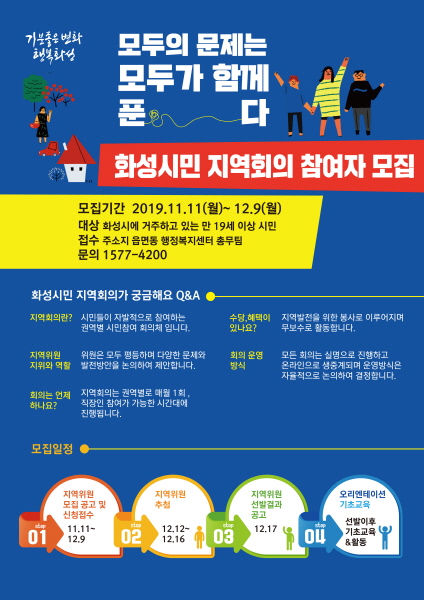 한편 화성시는 ‘모두의 문제는 모두가 함께 푼다’라는 슬로건으로 화성시민 지역회의에 참여할 지역위원을 다음달 9일까지 모집한다.