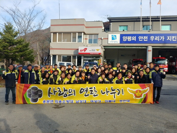윤건진 용문면장은 “다가오는 추위에 어려운 이웃들이 따뜻한 겨울을 보낼 수 있도록 연탄을 지원해주신 용문면 의용소방대 여러분께 감사드린다”고 전했다.