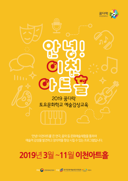이천아트홀에서는 지난 2013년부터 관내 청소년과 그 가족을 대상으로 6년째 ‘꿈다락 토요문화학교 예술감상교육’을 진행해왔으며 그간 약 1,800여명의 학생과 학부모가 참여해 이천시 이천아트홀이 제공하는 공연관람, 감상교육 등 다양한 문화예술 교육프로그램의 혜택을 받아 왔다.