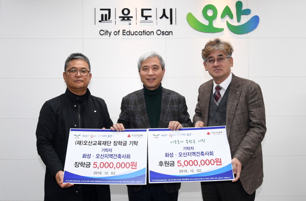 이날 전달식에는 곽상욱 오산시장과 화성·오산지역건축사회 김성원 회장, 유기성 부회장, 김선익 부회장, 이석규 자문위원, 송수호 총무 등 관계자들이 참석해 지역인재 양성을 위한 오산교육재단 장학금과 오산시 저소득층 지원을 위한 경기사회복지공동모금회의 이웃돕기 후원금을 전달했다. ?