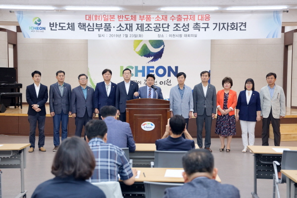 엄 시장은 “일본 정부의 반도체 수출 규제 조치로 인한 우리나라 피해를 최소화하고 우리나라 미래 잔략 산업 육성을 위해서 정부의 신속하고 적극적인 대책을 요구한다”며 “반도체 핵심부품 및 소재에 대한 국산화 추진을 위해 SK하이닉스 본사가 있는 이천시에 반도체 핵심부품 및 소재 제조공단을 조성해 달라”고 정부에 요구했다.