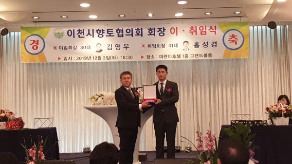 이날 제30대 김영우회장이 1년간의 임기를 마무리하고 홍성경회장이 제31대 회장으로 취임하면서 이천시 향토협의회의 끝없는 도약을 다짐했다.