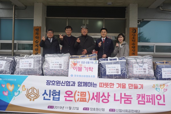 [미디어라이프(medialife)] 장호원신협은 지난 5일 연말을 앞두고 이불 33채와 전기요 10개를 장호원읍행정복지센터에 기탁했다.