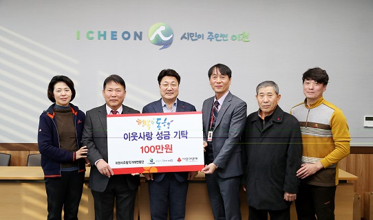 주말직거래연합단은 지역농가들이 일 년 동안 매 주말마다 설봉공원에서 직접 생산한 농산물을 판매해 얻은 수익금을 이천시 저소득 주민을 위해 사용해달라며 성금 100만원을 기탁해왔다.