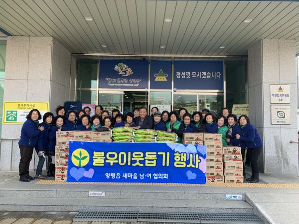 김승호 양평읍장은 “항상 양평읍민들을 위해 이웃돕기 행사를 진행해주시는 새마을남녀지도자 협의회에 감사의 인사를 드리며 민·관이 협력해 지역 복지취약계층 이웃들을 책임지고 돌볼 수 있는 기부·나눔문화가 확산되도록 노력하겠다”고 말했다.