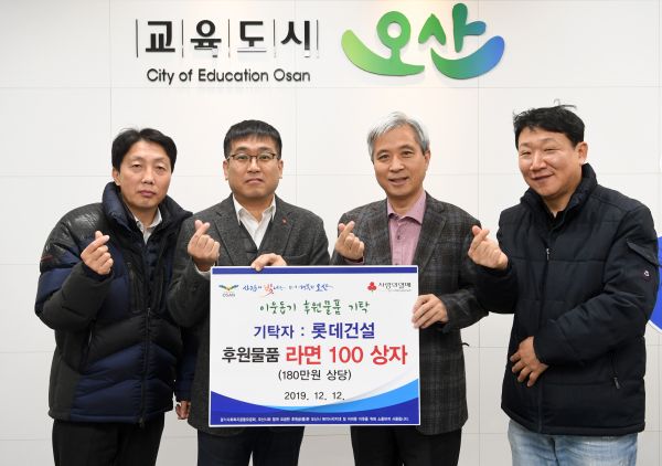 곽상욱 오산시장은 “연말을 맞이해 어려운 이웃을 돕기 위한 기부에 동참해 후원해주신 롯데건설에 감사드린다”며 “후원물품은 지역 내 소외계층에게 전달해 더불어 사는 오산시를 만들기 위해 노력하겠다”고 말했다.