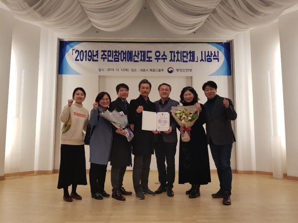 이날 시상식은 행정안전부에서 국정과제 중 하나인 주민참여예산제도 활성화를 위해 2019년도 전국 75개 광역 및 기초 자치단체에서 제출된 103건의 운영사례를 평가해 우수 자치단체 선정 및 우수 모델을 발굴해 전국으로 확산시키고자 24개 우수 자치단체를 선정해 격려하기 위해 마련됐다.