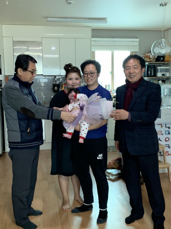 이날 이장협의회와 부녀회, 관한2리 이장님께서 각각 꽃과 케이크 금일봉을 준비해 해당 가정에 전달하고 축하했다. 100일 축하 사절단 방문 1호 가정에서는 “연락은 받았지만 정말로 방문하실 줄은 몰랐다면서 진심으로 감사하다”고 전했다.